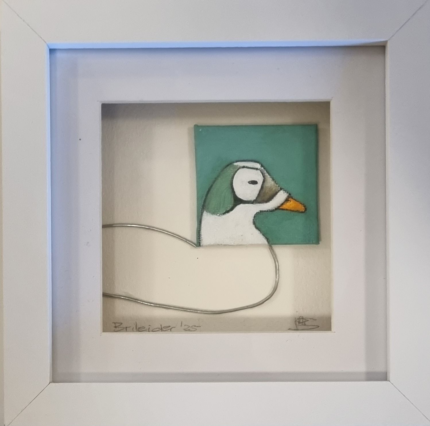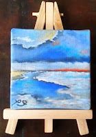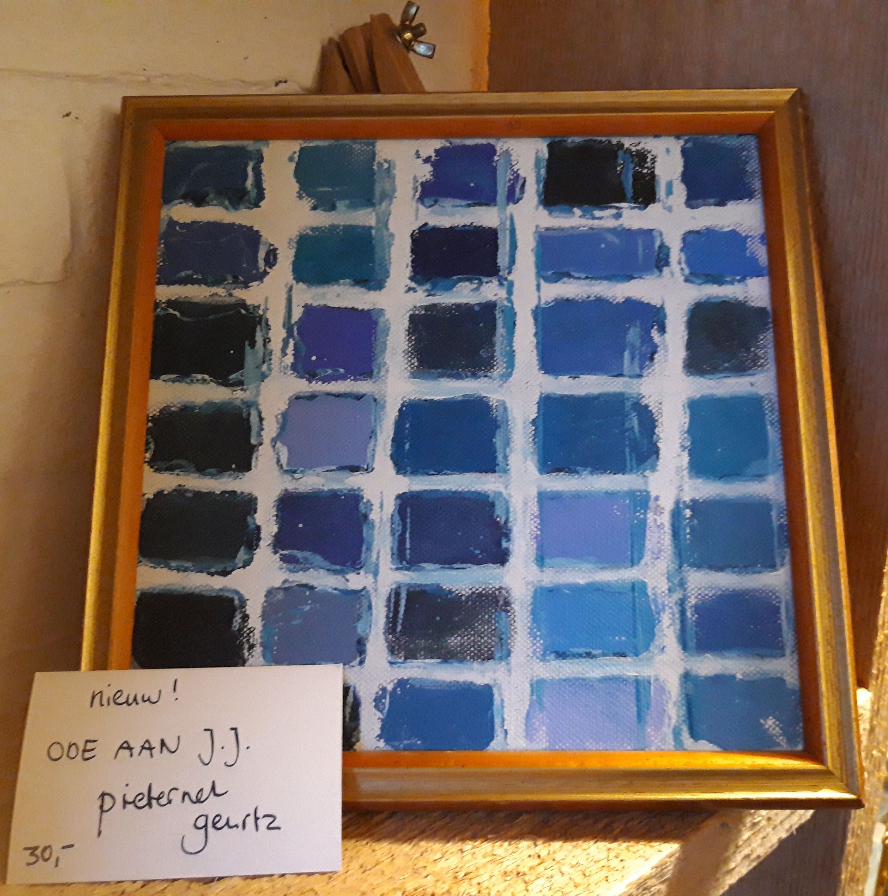Natuurlijk zijn er weer mini schilderijtjes te zien. Niet meer in de hele grote lijst binnen in de galerie (met als titel 104) maar in het rek buiten. Verschillende thema's en verschillende prijsjes.