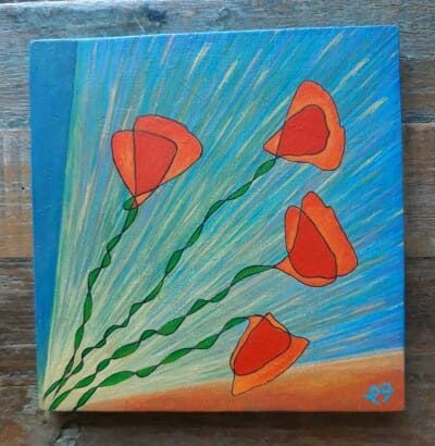 Pieternel staat bekend om haar klaproos tekeningen en schilderijen. "Zeg 't met bloemen" is een nieuw project dat ze laat zien en het toeval wil dat Judith ook met dit thema heeft gewerkt. Miriam fotografeert niet alleen heel veel maar ze maakt ook boekjes van haar foto's, zelfs het binden doet ze zelf en natuurlijk op een creatieve manier. Voor deze expositie heeft ze een aantal zwart-wit foto's die ze van klaprozen heeft gemaakt met een rode feston-steek gekaderd.