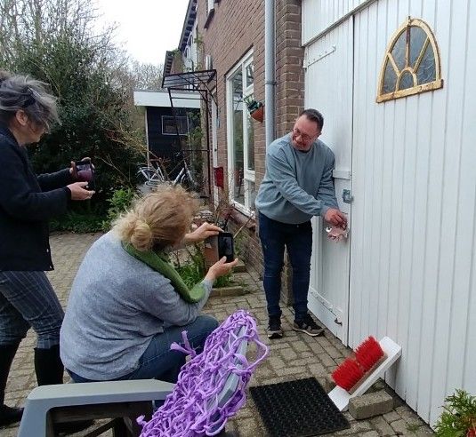 De Kunstenaar Fish verrichte de opening, kijk maar op de foto! En in de maanden juni en juli : open atelier op woensdag, kunstzomer!