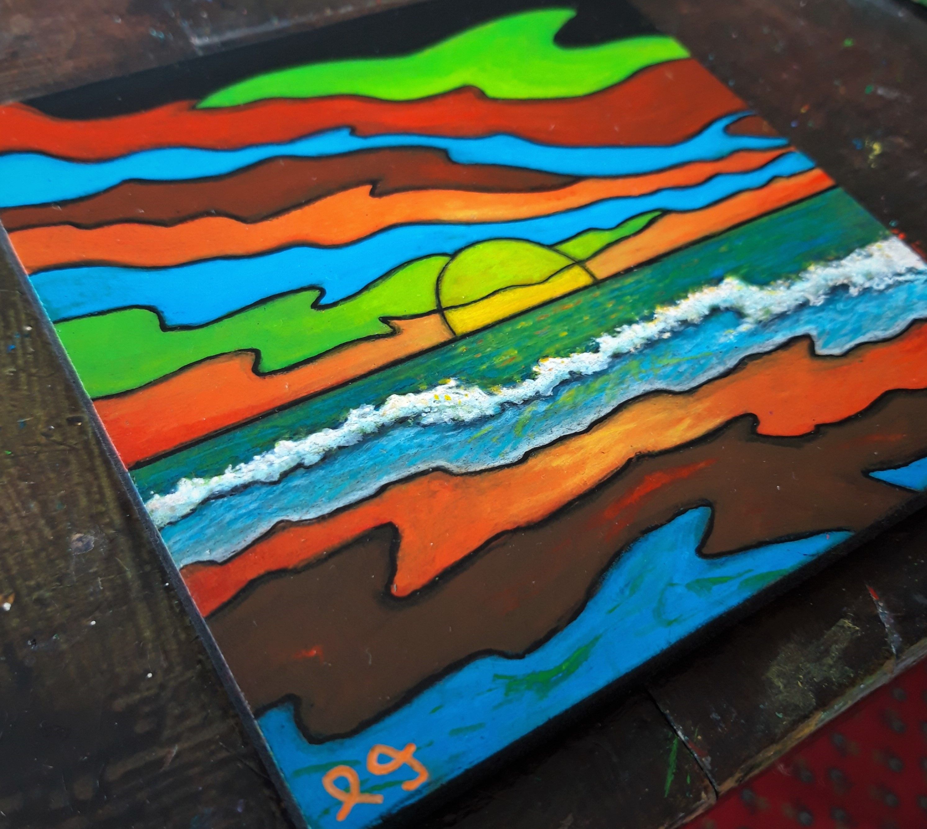 Pieternel Geurtz (PG) schildert buiten, dit jaar het thema zonsopgang. Ze geeft ook workshops en zal bezoekers proberen te verleiden deel te nemen. Soms is ze ook in park De Wezentuin (Glazen Paleis) in het centrum van Den Burg om mee te jammen. Dan is de Garage even gesloten.